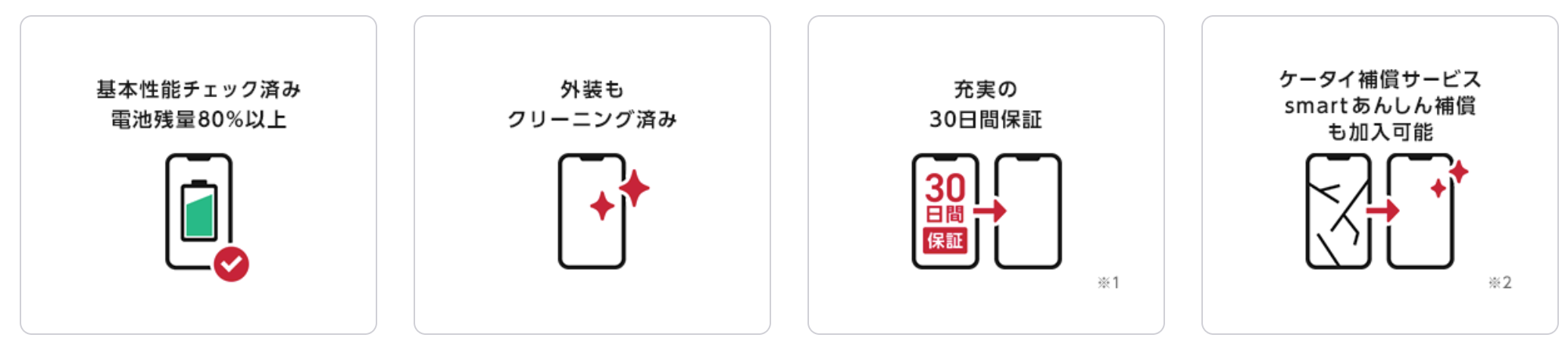 キャリアの安心感 :キャリア認定中古品 (au/SB/ドコモ)